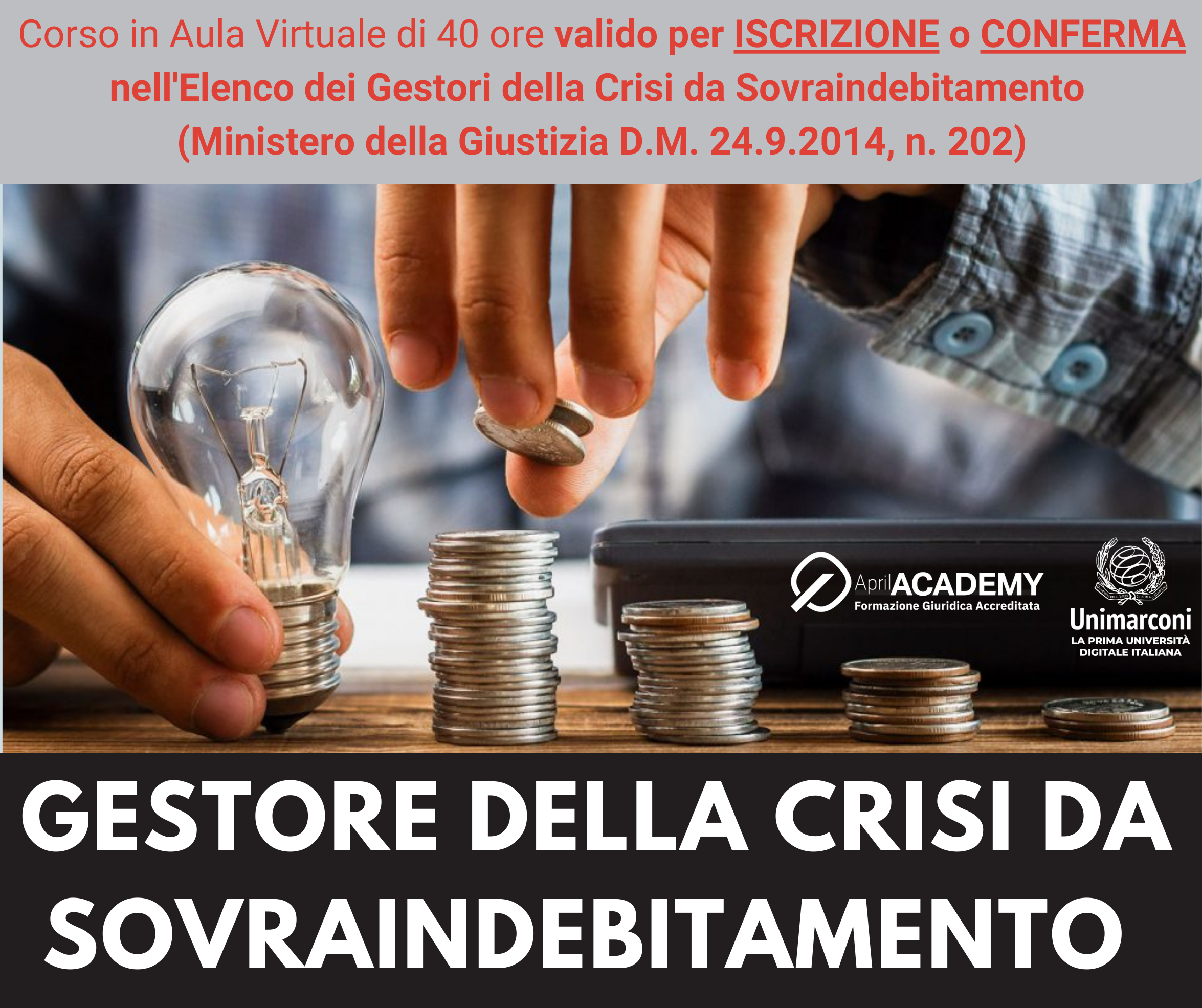 Corso Universitario Abilitante-Aggiornamento – GESTORE DELLA CRISI DA SOVRAINDEBITAMENTO – Ed. Gennaio 2025